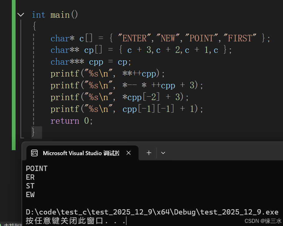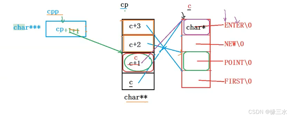 - [4 **第三行printf** 注意前面的++才会改变cpp的值,因为等价于cpp = cpp +1 这里cpp[-2] == *(cpp-2) *cpp[-2] == **(cpp-2) 并不会改变cpp的值  5 **第四行printf** cpp[-1] == *(cpp-1) cpp[-1][-1] == *(*(cpp-1)-1) ](#4 第三行printf 注意前面的++才会改变cpp的值,因为等价于cpp = cpp +1 这里cpp[-2] == *(cpp-2) *cpp[-2] == **(cpp-2) 并不会改变cpp的值