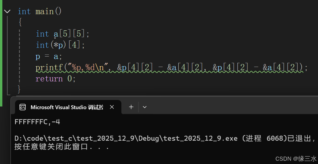 printf("%p,%d\n", &p[4][2] - &a[4][2], &p[4][2] - &a[4][2]);