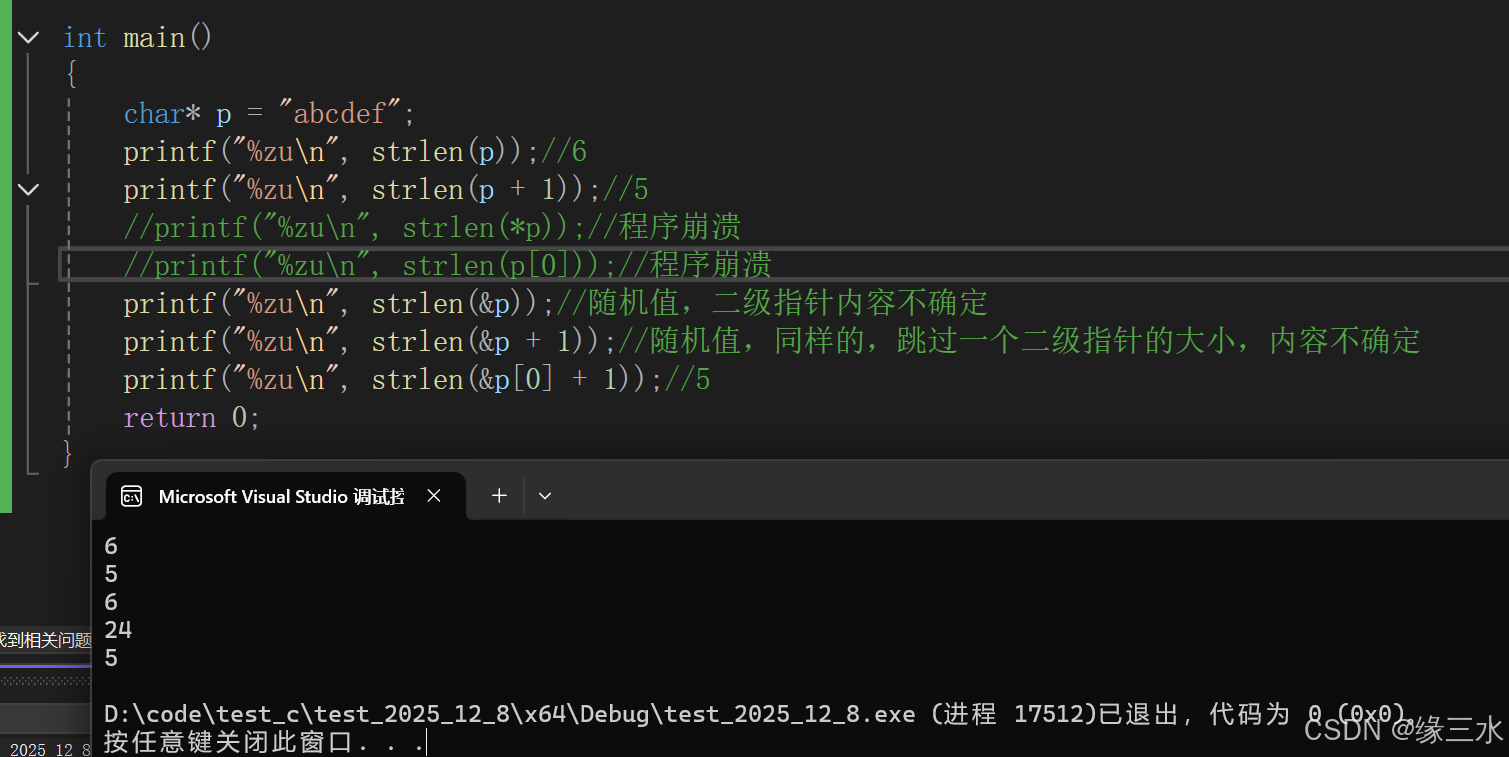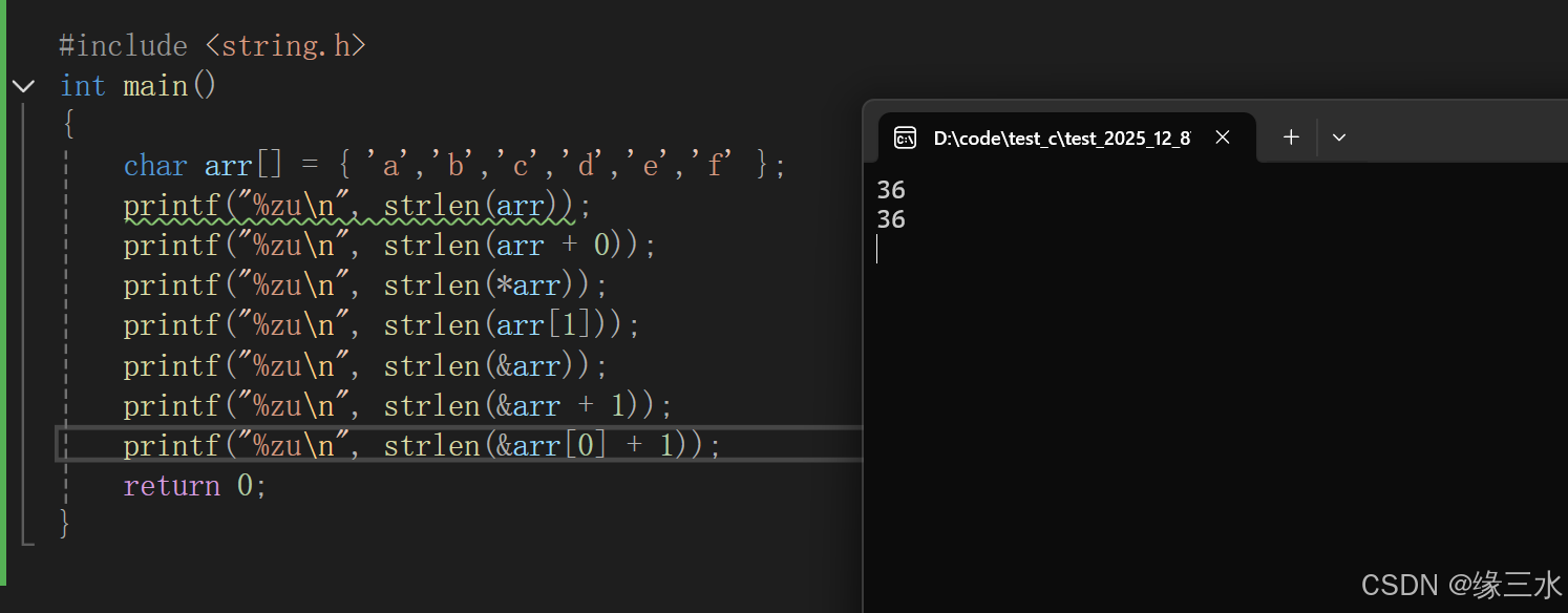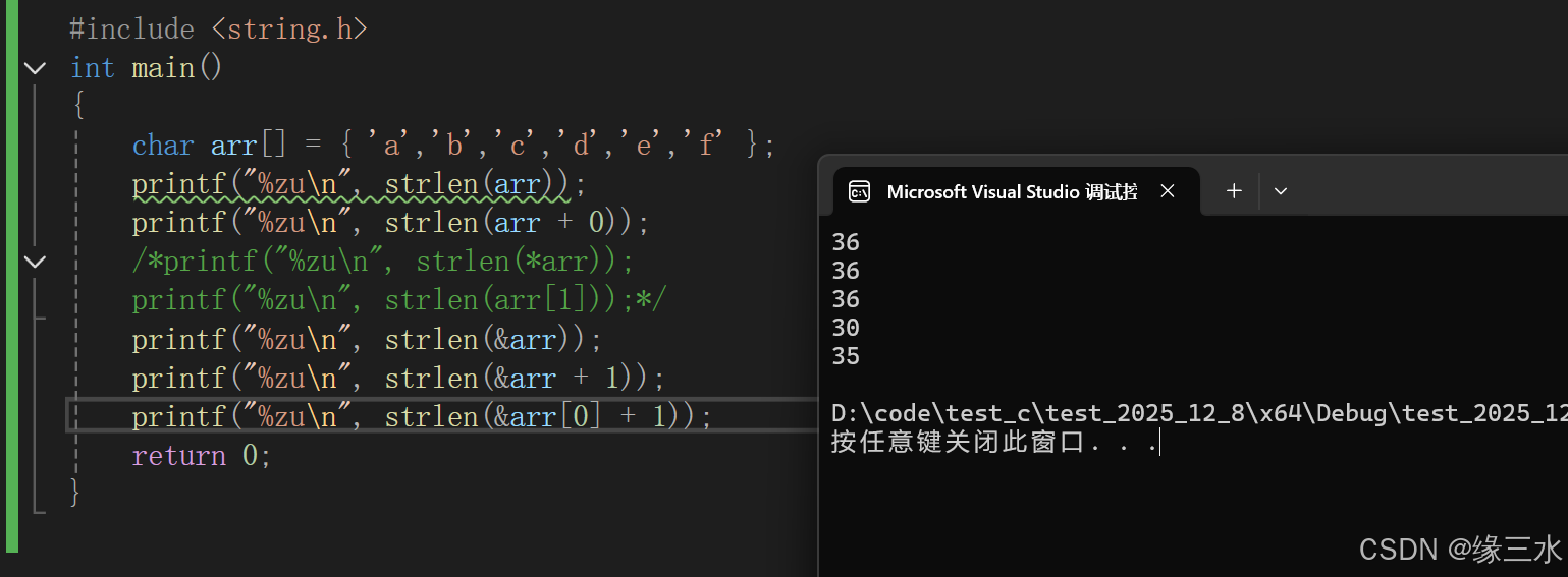 得出的结果是无符号整型,可以用 %zu 表示