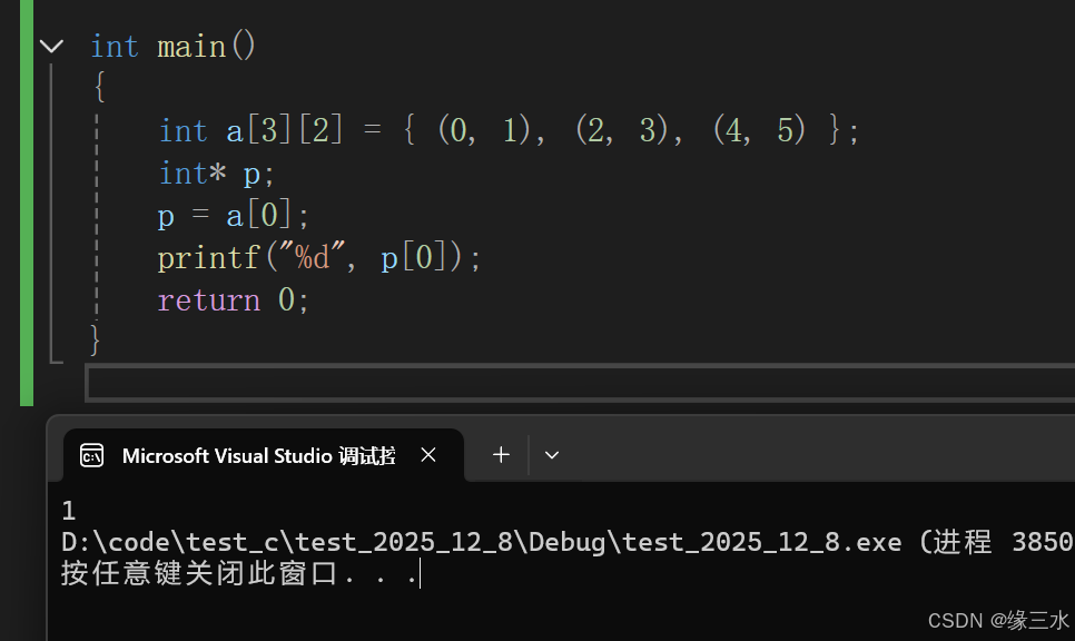 printf( "%d", p[0]);//p[0] == *(p+0)代表第一行第一个元素1