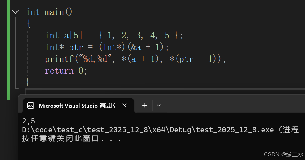 因此,ptr-1就是向后一个int大小的地址,指向5