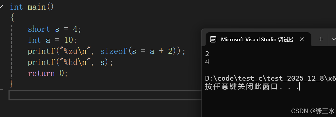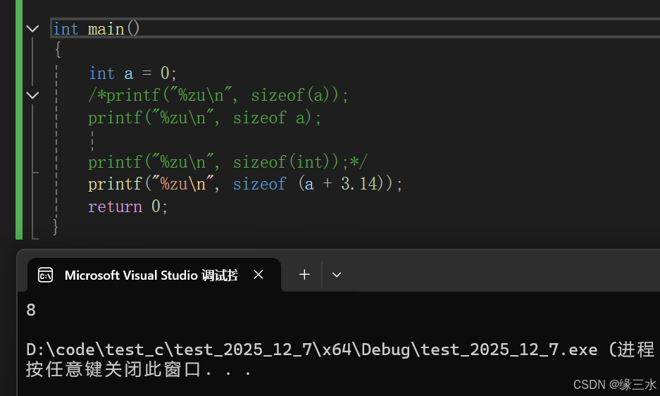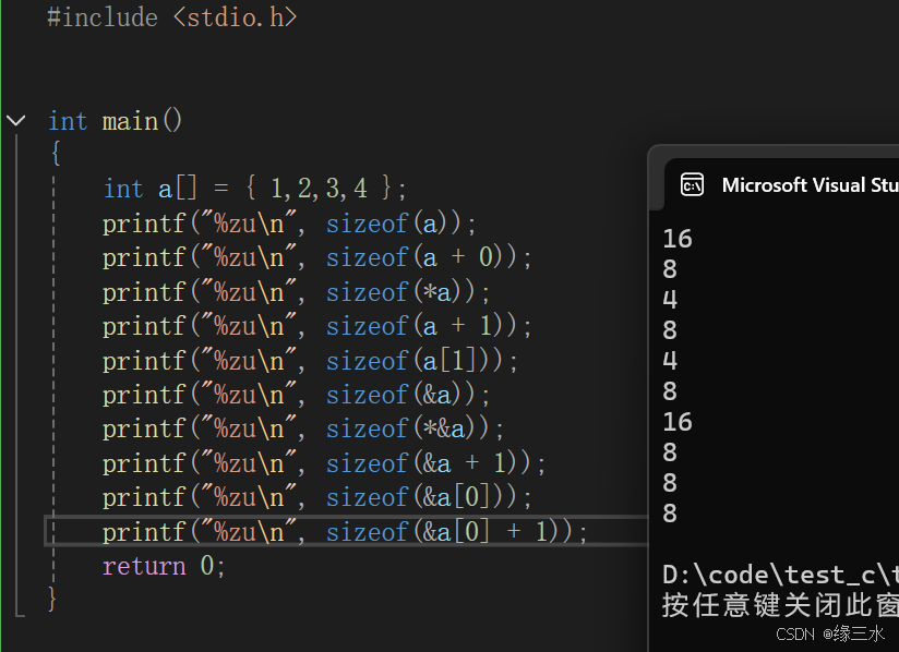 printf("%zu\n", sizeof(a + 0));// 4/8