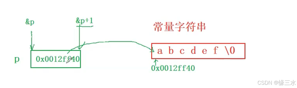 //由于类型是char*,+1跳过一个同类型大小地址,存放的地址是指向'a'的地址