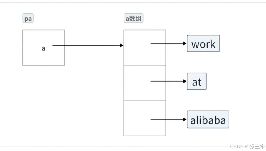 //创建一个二级指针存放数组a首元素地址,即指向'w'的地址