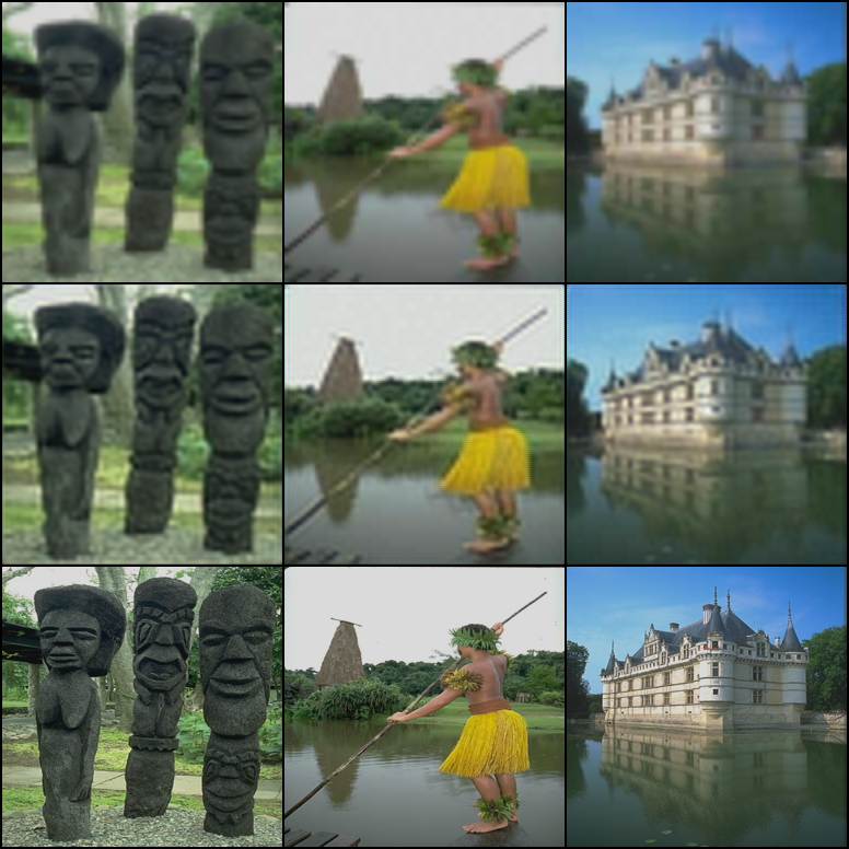 save_image(torch.cat([lr_vis.cpu()[:3], sr.cpu()[:3], hr.cpu()[:3]], 0),