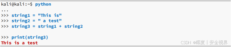 | 连接多个字符串 | result = s1 + s2 + s3 |