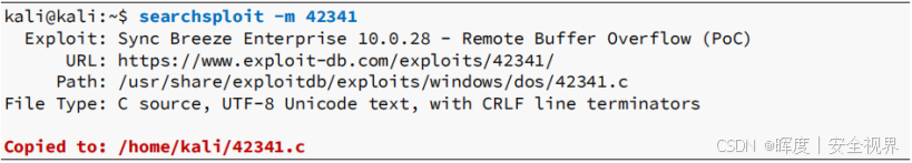 使用 searchsploit -m 命令将漏洞利用复制到本地工作目录后,可检查其内容。