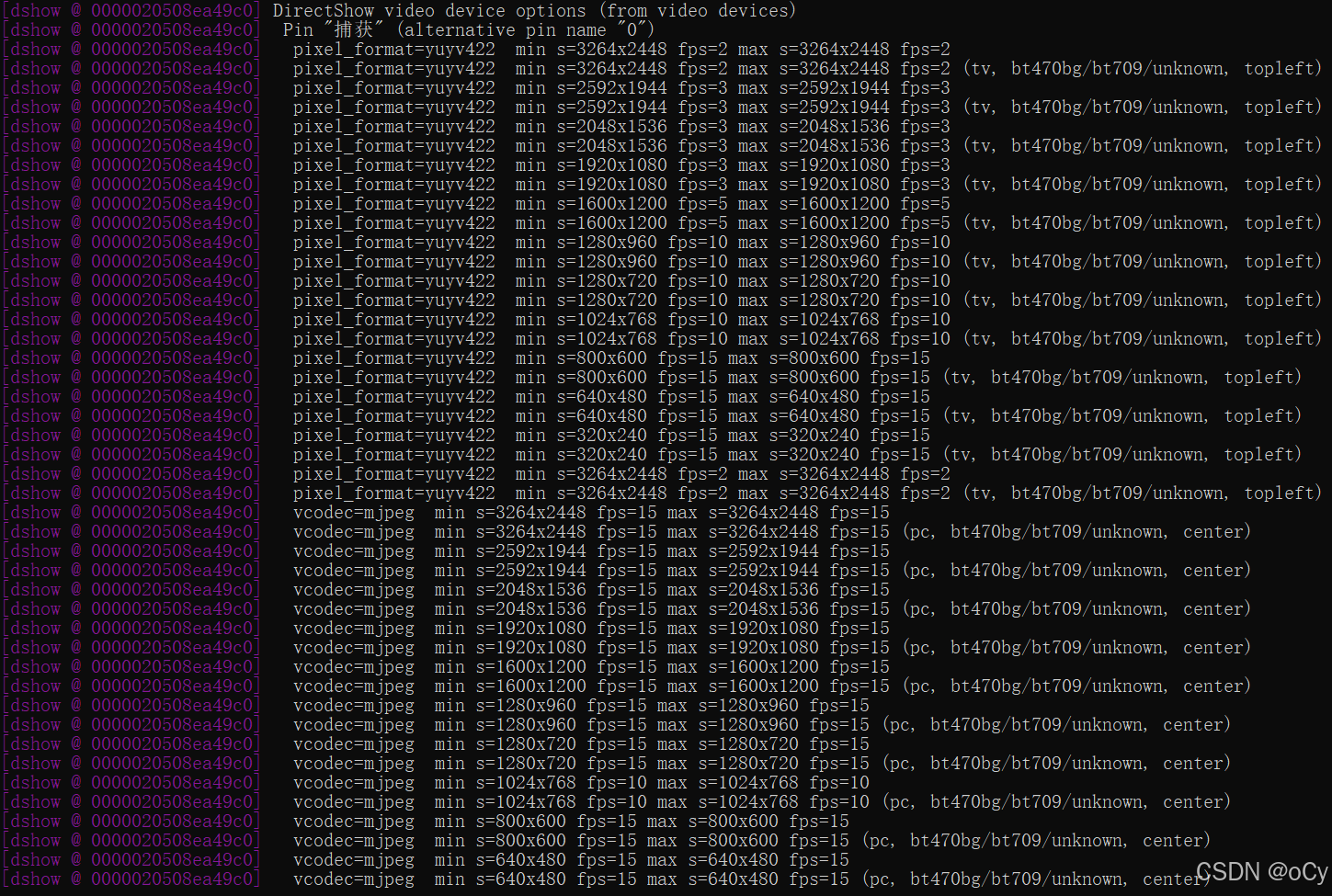 ffplay -f dshow -list_options true -i video="xxCamera"