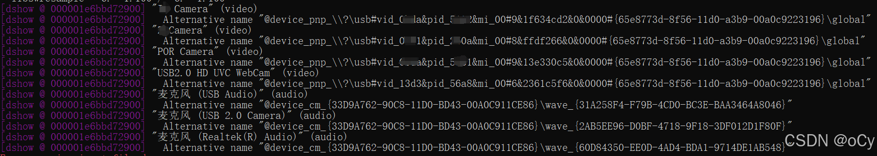 QRegularExpression cameraPattern2(R"(\[dshow.*\]\s+\""(.*?)\""\s\(video\))"); // 模式2