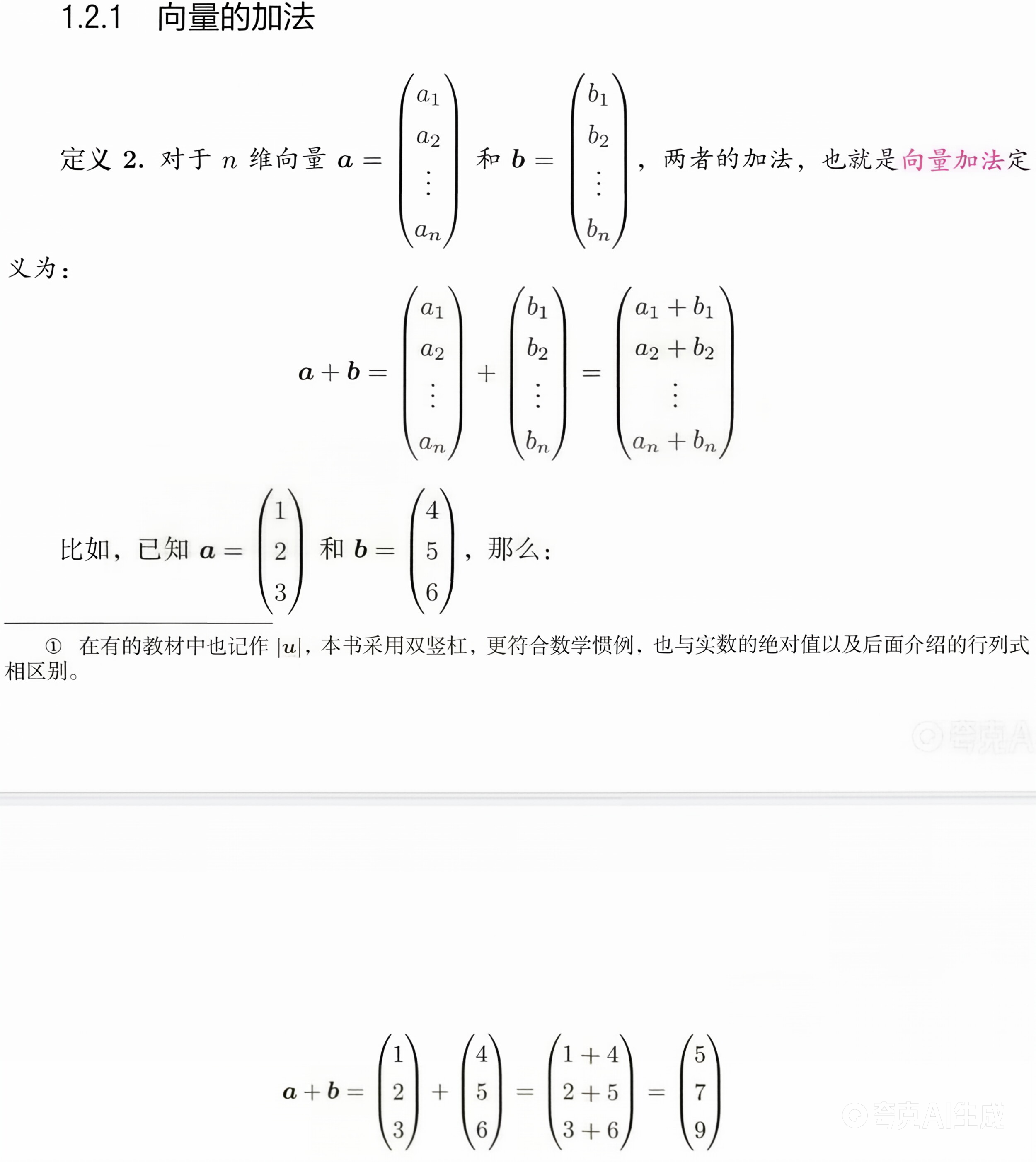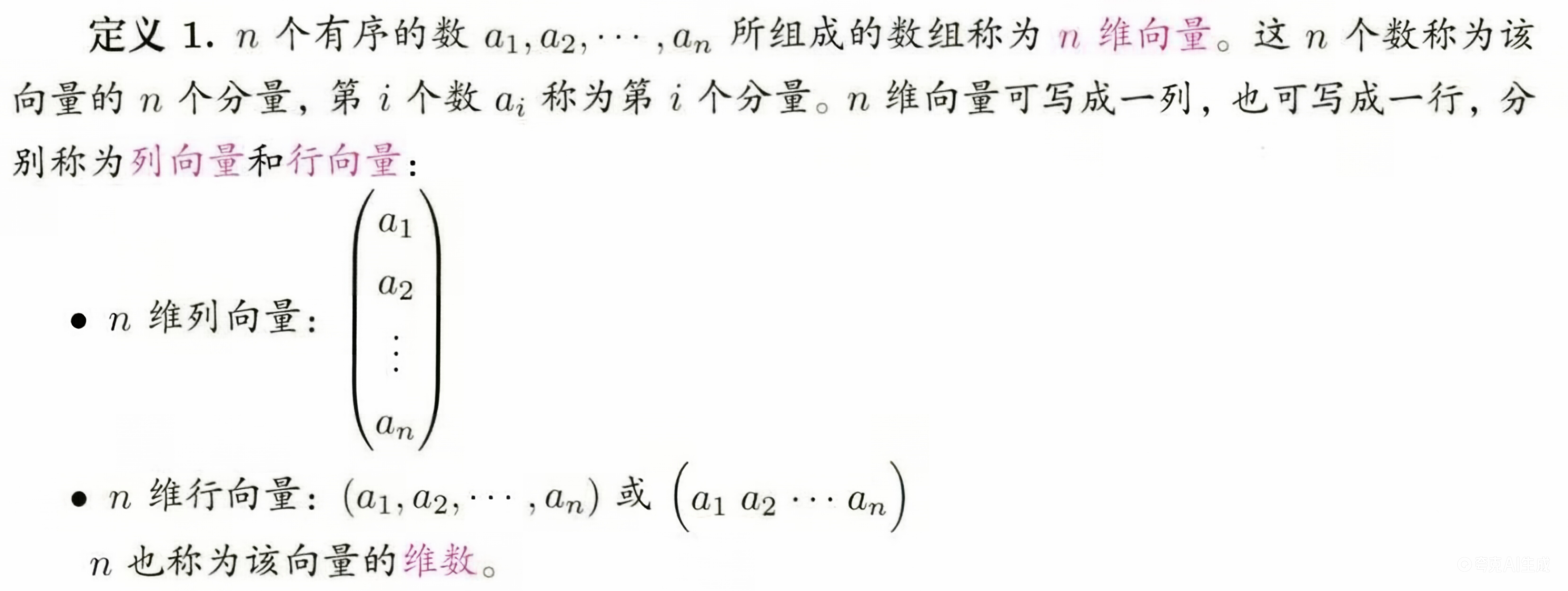 相对于高中课程,线性代数中向量的定义会更加严格: