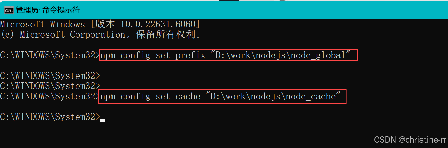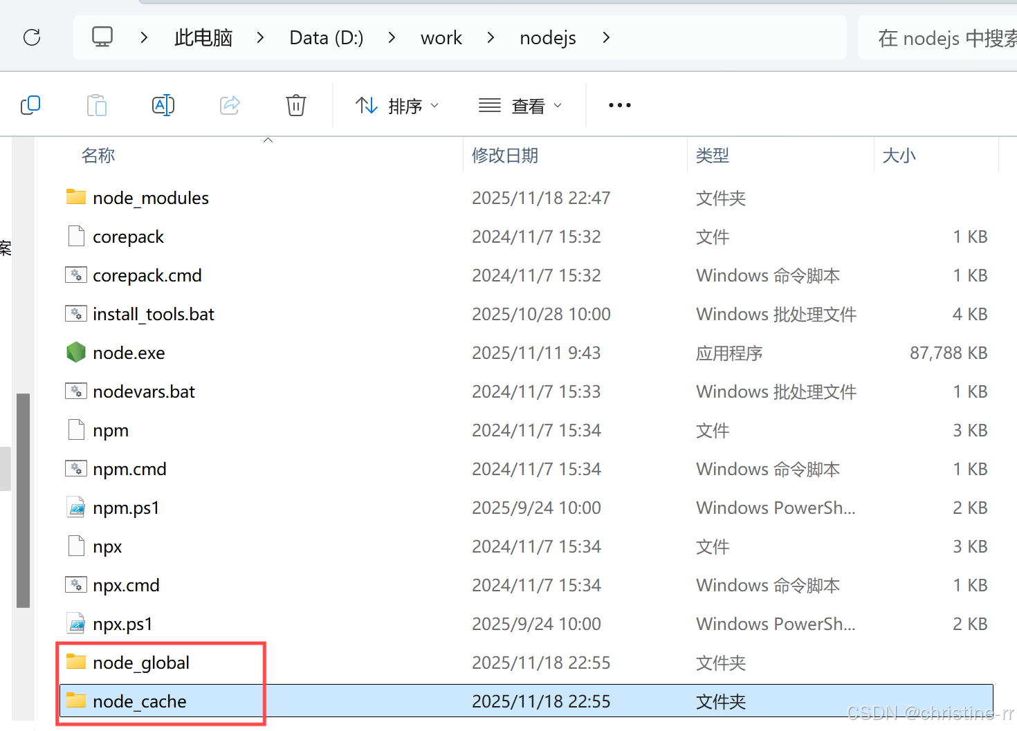 - 在刚刚的node.js安装路径下,新建存放全局安装的包 和存放缓存文件 (此安装路径需要管理员身份)