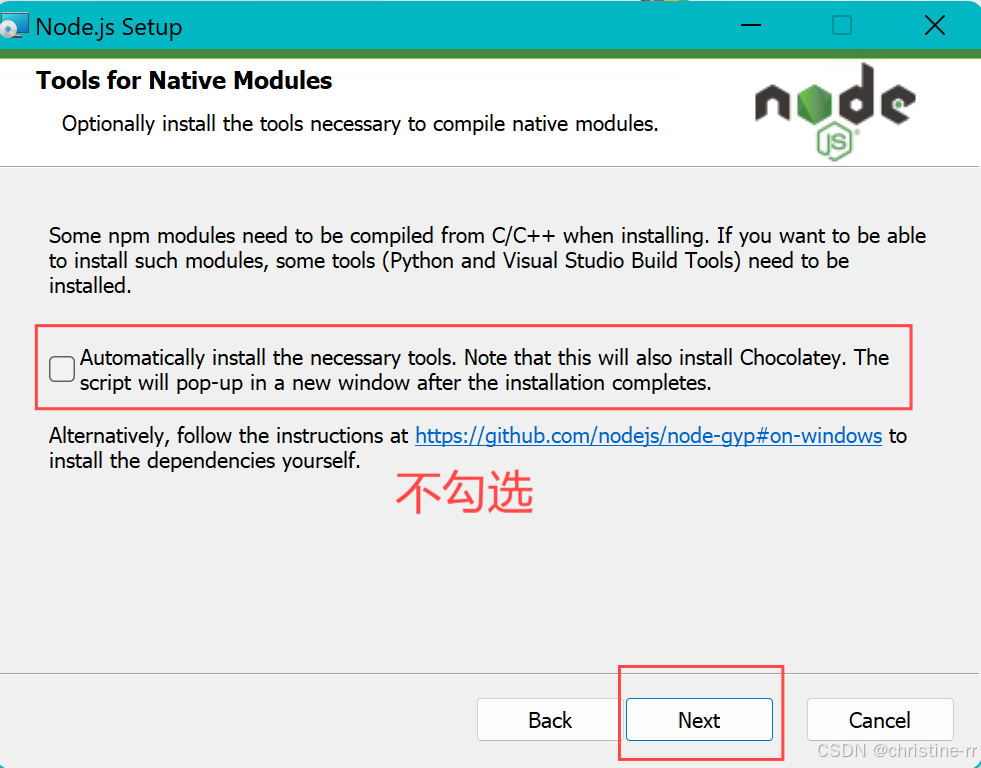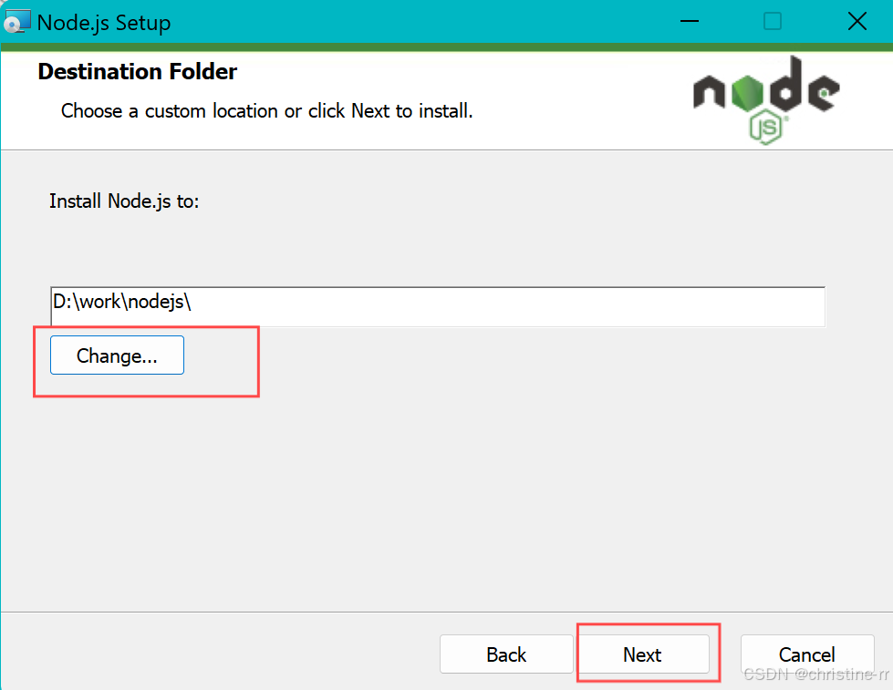C:\Program Files\nodejs\,也可自定义,注意路径不要有中文或空格),点击 Next。