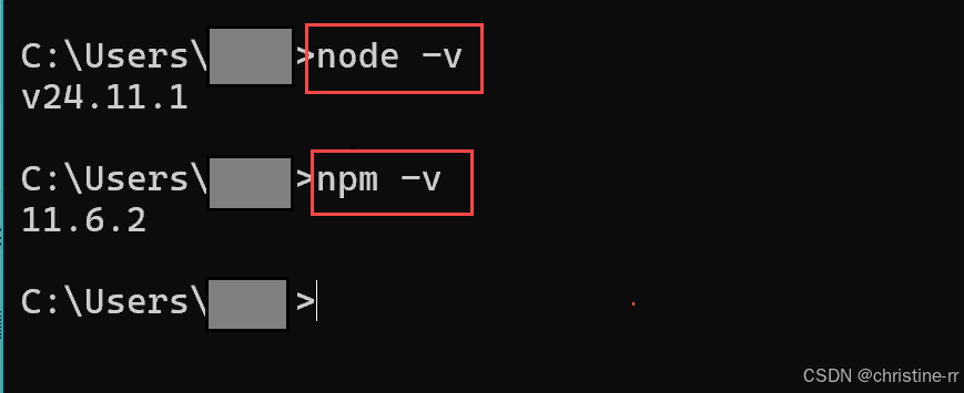 node -v # 查看 Node.js 版本(如 v24.11.1)