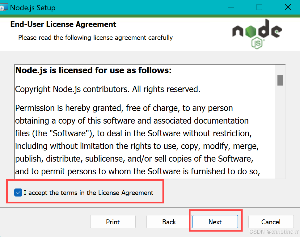 - 点击 Next ,勾选同意协议(I accept...),继续点击 Next。