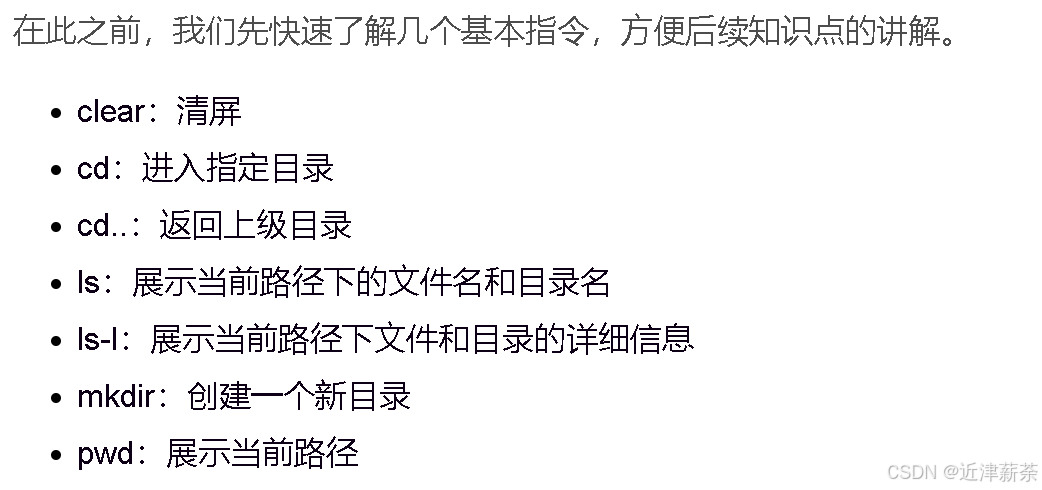 在此之前,我们先快速了解几个基本指令,方便后续知识点的讲解。