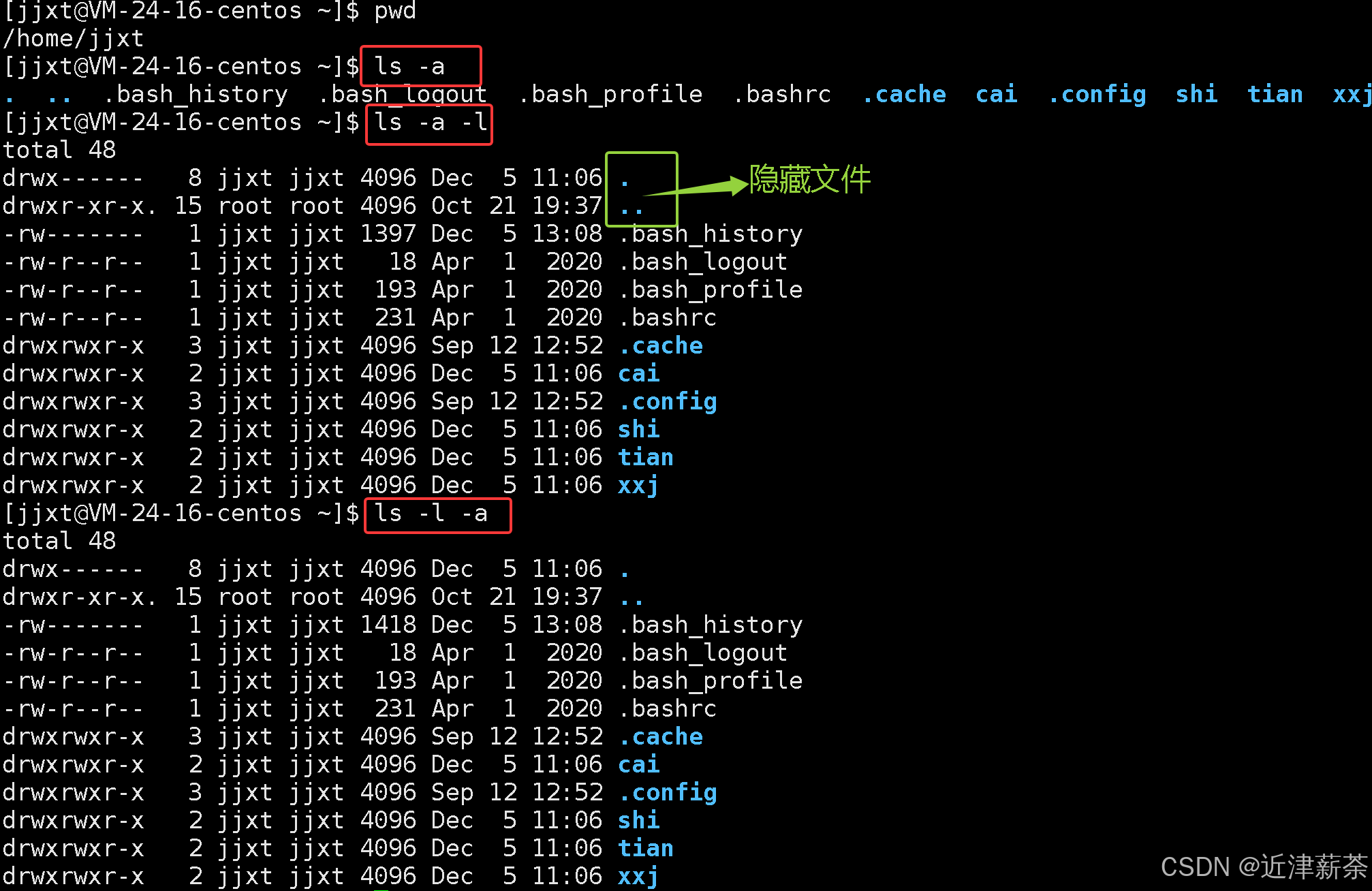 由上图,我们可以发现**..存在的作用:配合指令cd,退回上一级目录。**