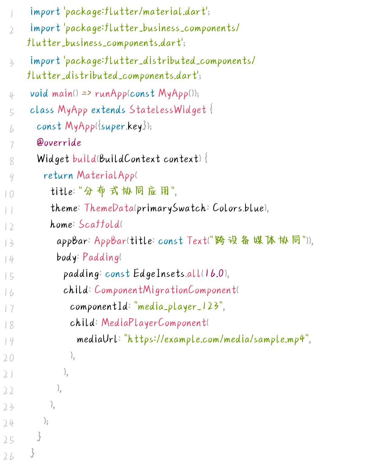 组合各层组件,构建"媒体播放+跨设备迁移+数据同步"的完整场景: