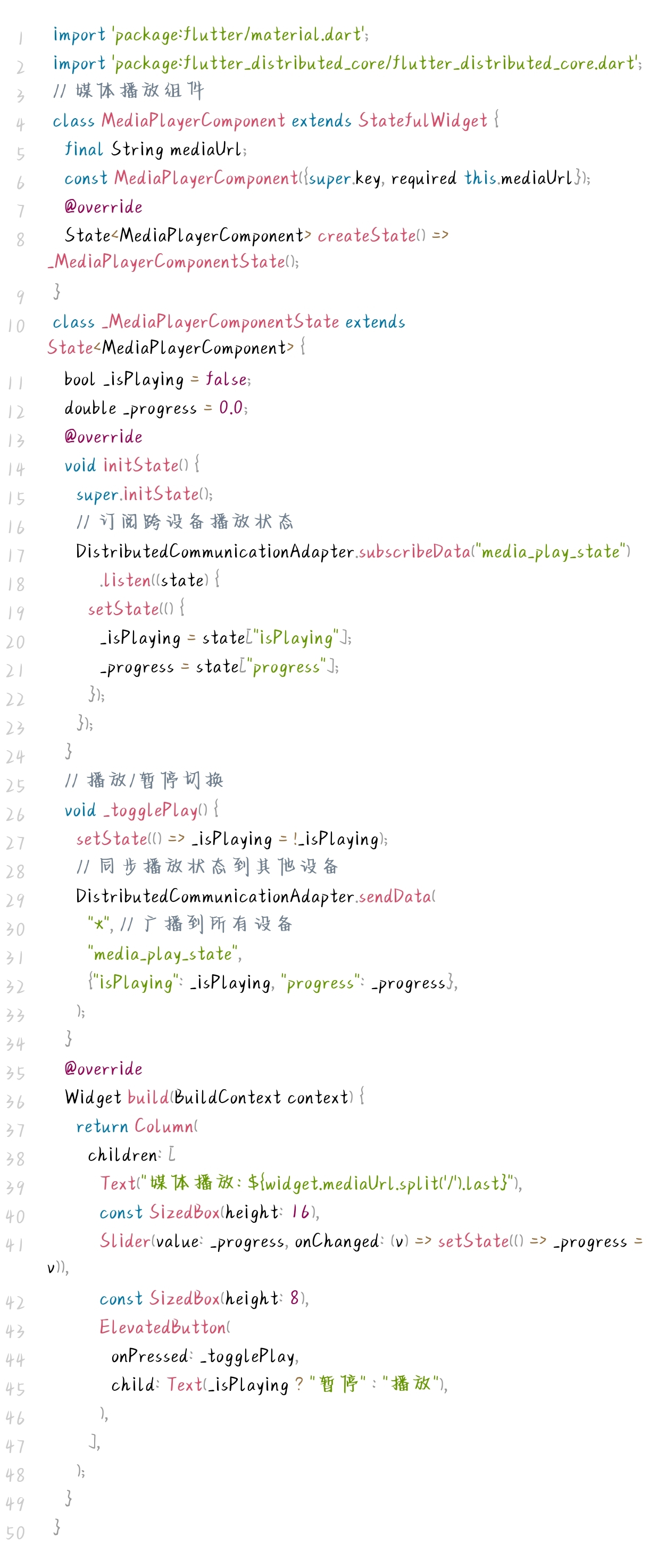 - flutter_distributed_core:Flutter端分布式协同核心库,提供组件流转、数据订阅等上层API。