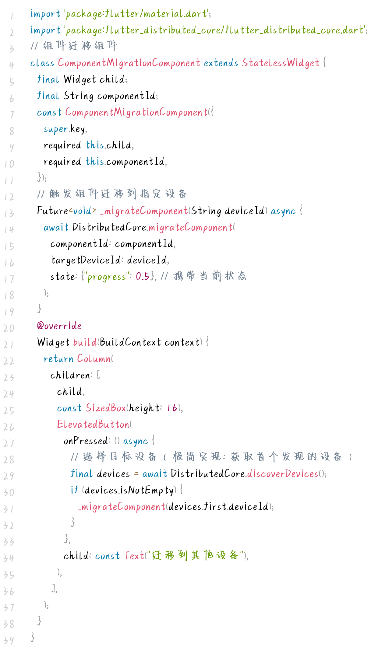 (四)跨设备协同组件层:组件迁移组件(Flutter Dart)