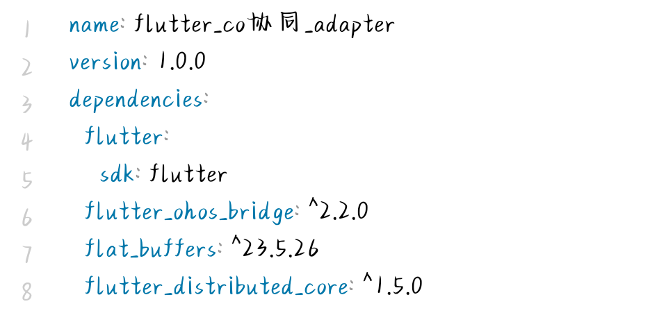 - Flutter:Flutter SDK 3.24.0+、flutter_distributed_core: ^1.5.0、flutter_ohos_bridge: ^2.2.0、flat_buffers: ^23.5.26;