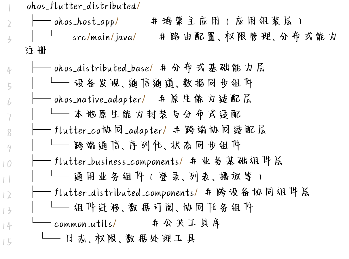 在全场景智慧生态加速落地的背景下,用户对"跨设备无缝流转、数据实时同步、能力按需调用"的需求日益迫切。开源鸿蒙(OpenHarmony)的分布式软总线、设备管理、数据共享等核心能力,为跨设备协同提供了底层支撑;Flutter则以组件化复用、跨端UI一致性、高效渲染的优势,成为全场景应用开发的优选框架。二者的深度融合,通过"分布式能力组件化、跨端协同标准化、业务逻辑模块化"的创新路径,打破了传统跨设备开发"适配复杂、协同卡顿、体验割裂"的痛点,实现"一次开发、多端部署、跨设备无缝协同"的开发目标。本文从分布式协同原理、架构设计、组件实现、优化策略到工程化落地,结合极简代码示例,全方位拆解全场景分布式协同的组件化开发方案。
