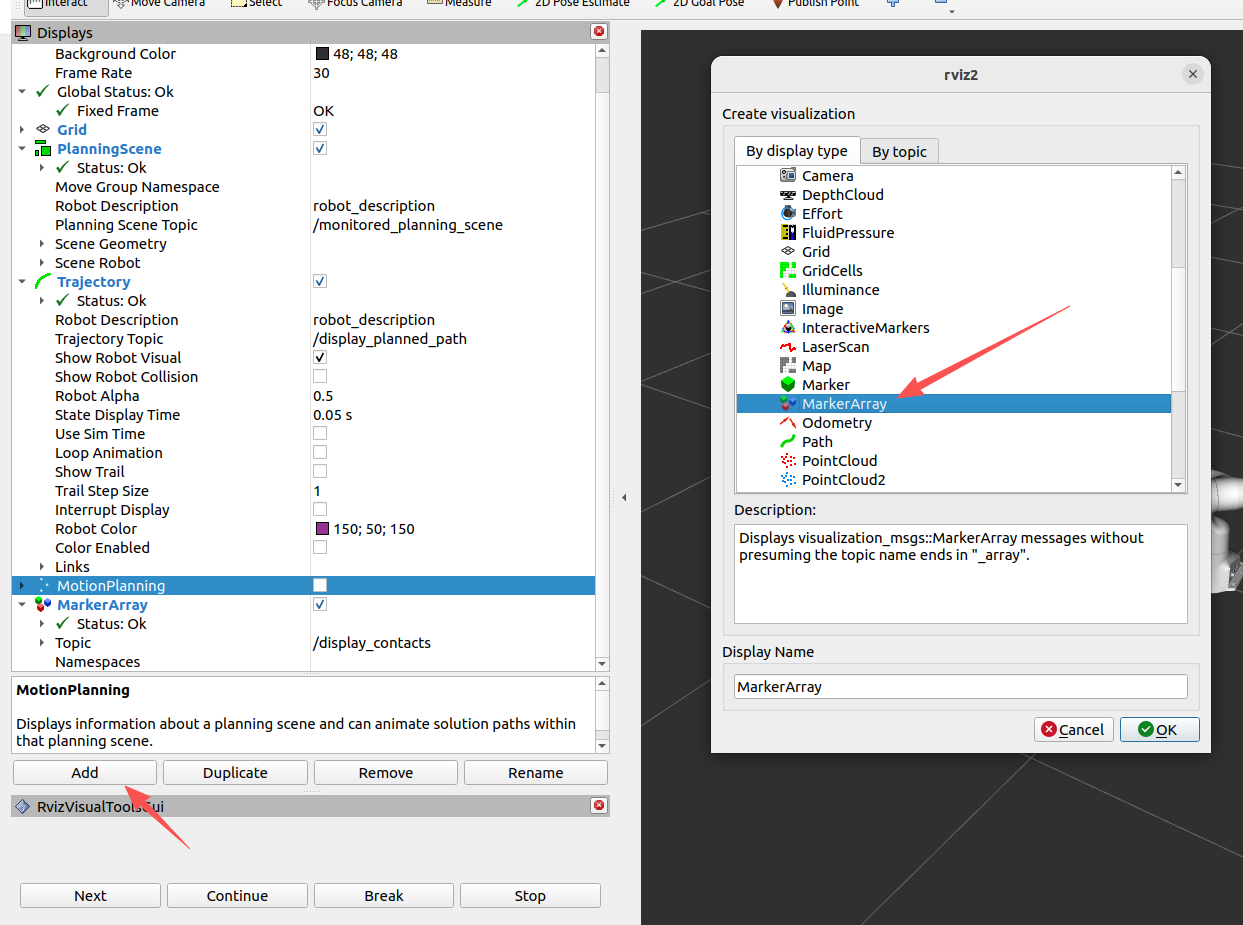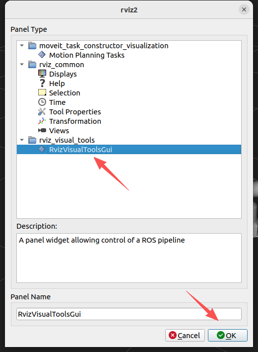 - 2.在 moveit_ros_visualization 文件夹中,选择 "Motion Planning" 作为显示类型,点击 OK。