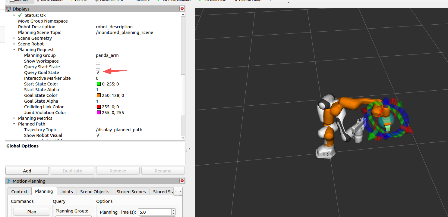 - 3.勾选 Planning Request 树形菜单中的 Query Goal State。