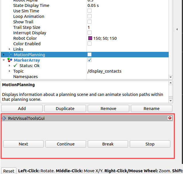 同样的关闭 MotionPlanning ,打开RivzVisualToolsGui