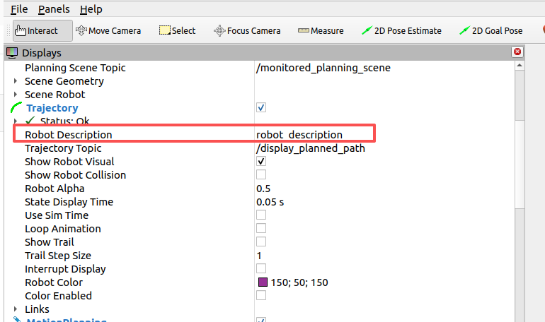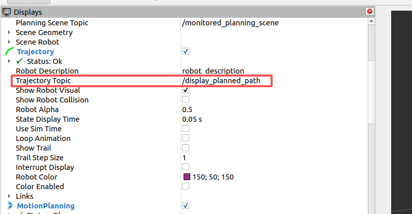 - 确保 Planned Path 下的 Trajectory Topic 设为 /display_planned_path。