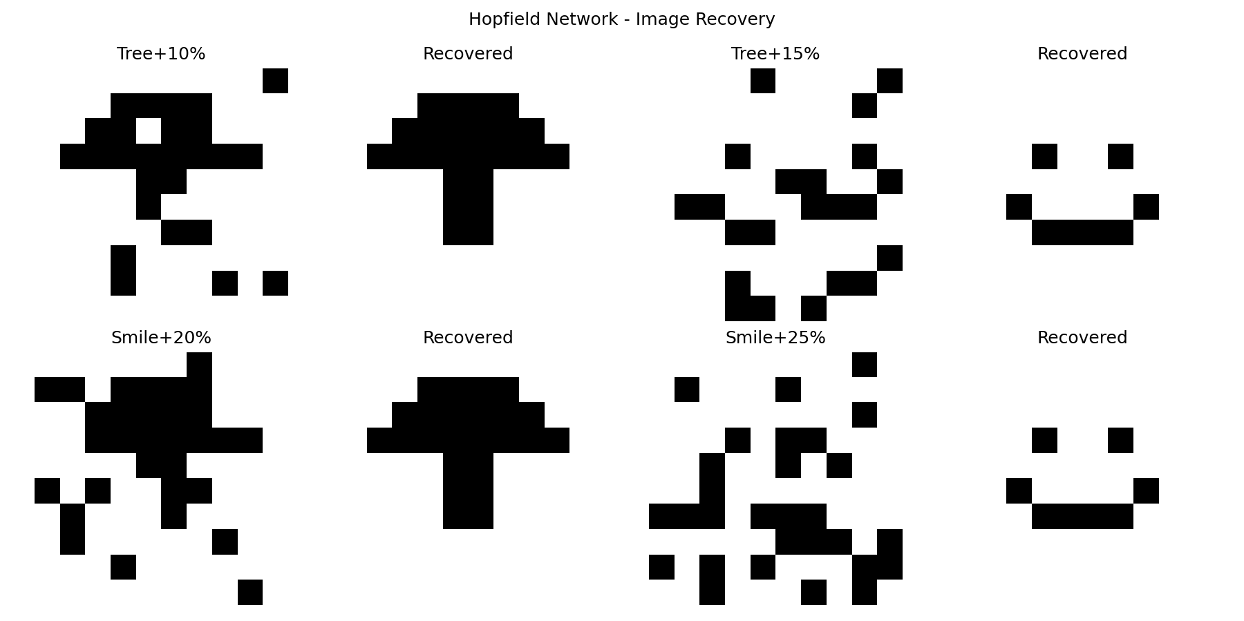 - Hopfield 网络能够从噪声污染的输入中恢复原始模式