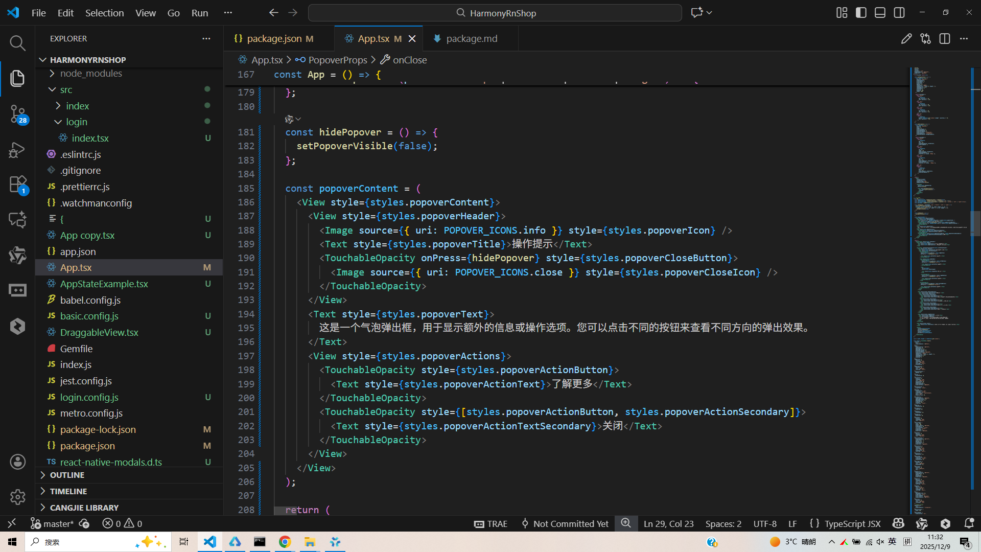 接下来通过打包命令npn run harmony将reactNative的代码打包成为bundle,这样可以进行在开源鸿蒙OpenHarmony中进行使用。