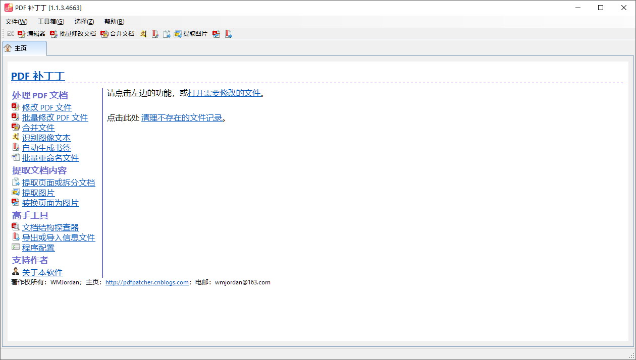 PDF 补丁丁 v1.1.3.4663 绿色版是一款功能全面的PDF编辑软件,专为Windows用户设计。它支持添加、修改和删除PDF中的文本、图像与页面,并具备密码保护、批量处理等实用功能。兼容PDF 1.0至2.0全版本,操作简单易上手,能满足个人及办公场景下的各类PDF编辑需求。无论是日常文档处理还是批量作业,这款软件都能提供高效解决方案。