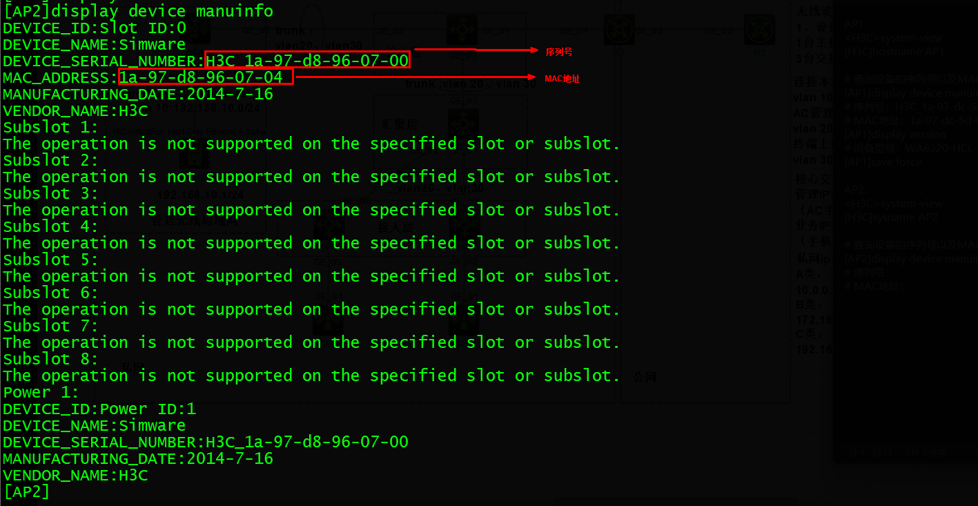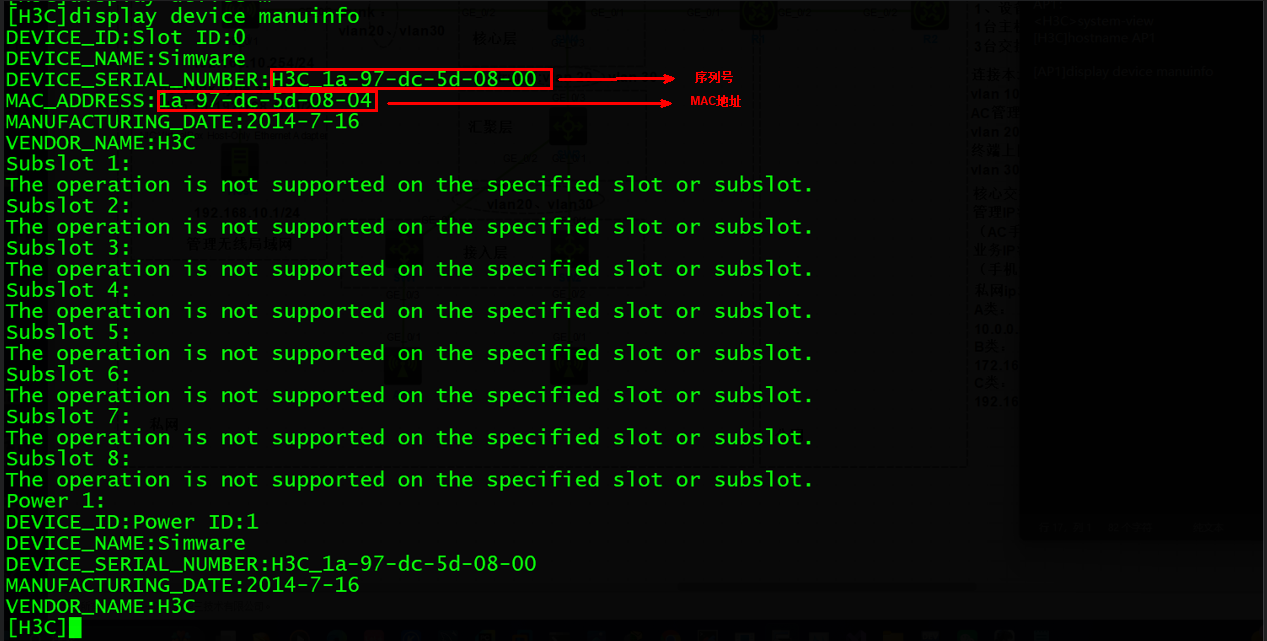 \[AP1\]display device manuinfo # 显示设备制造信息(包括序列号和MAC地址)