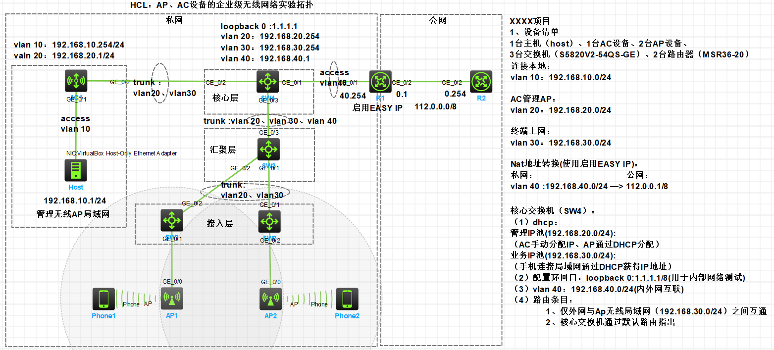 - VLAN 30(192.168.30.0/24):为无线终端用户提供上网业务