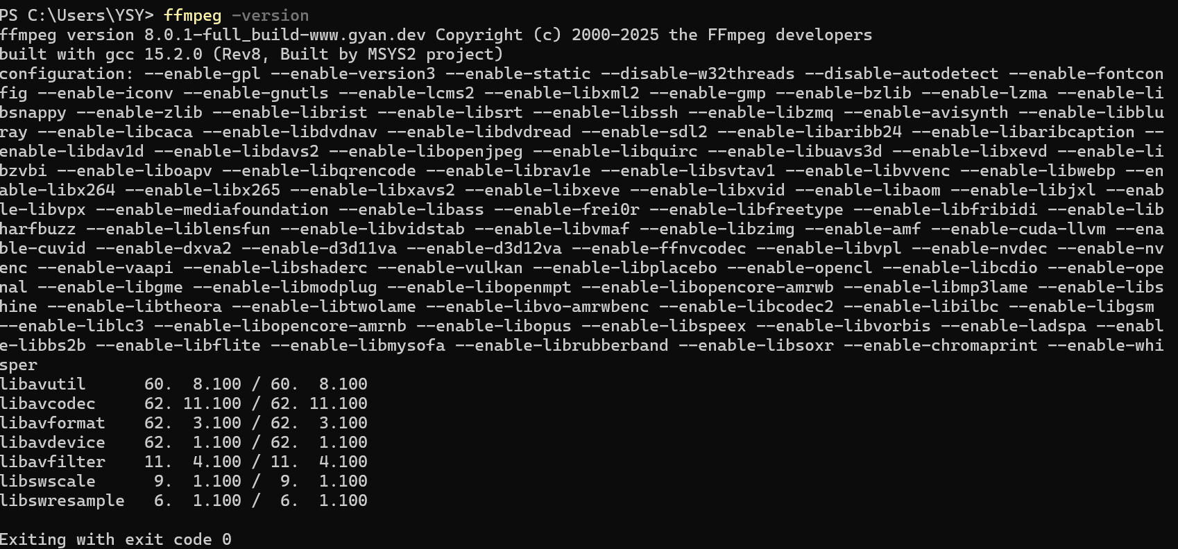 然后点击确定即可。然后我们打开电脑终端,输入ffmpeg -version命令出现如下界面就说明ffmpeg安装成功了。