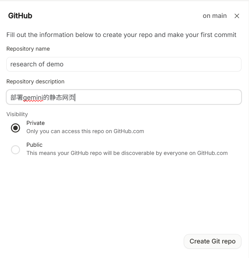 在github上创建关于这个静态网页的repo