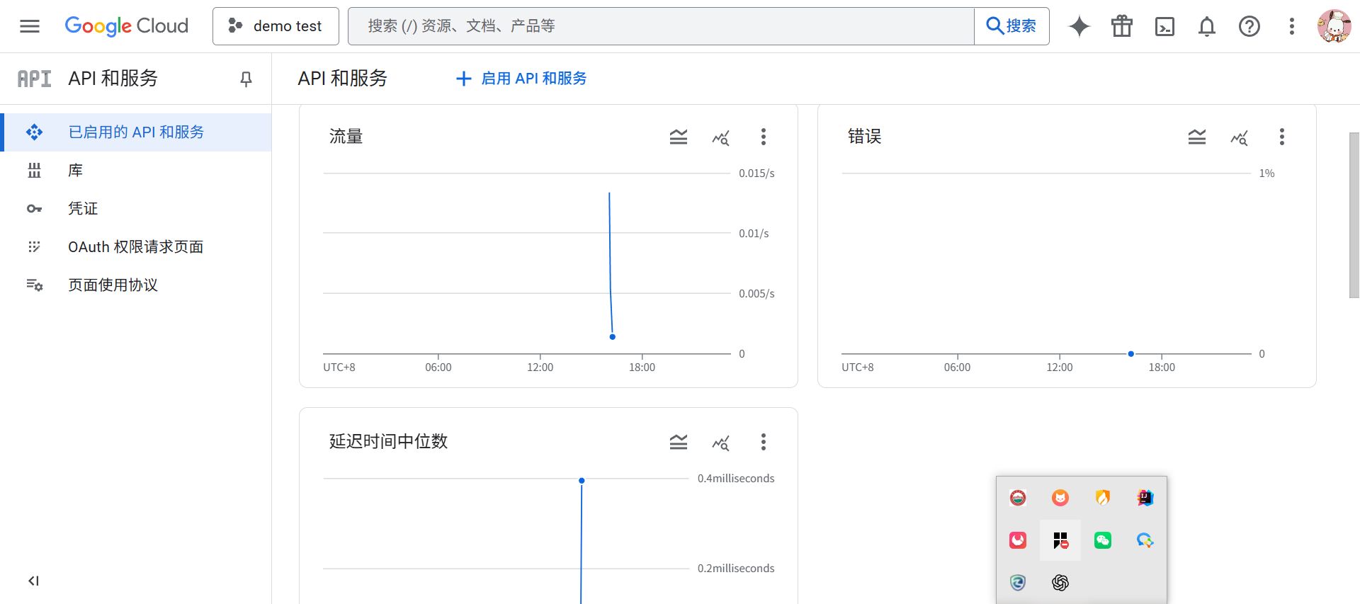 现在我们可以进入到当前的google云的API与服务的界面查看当前的已经启用的API,
