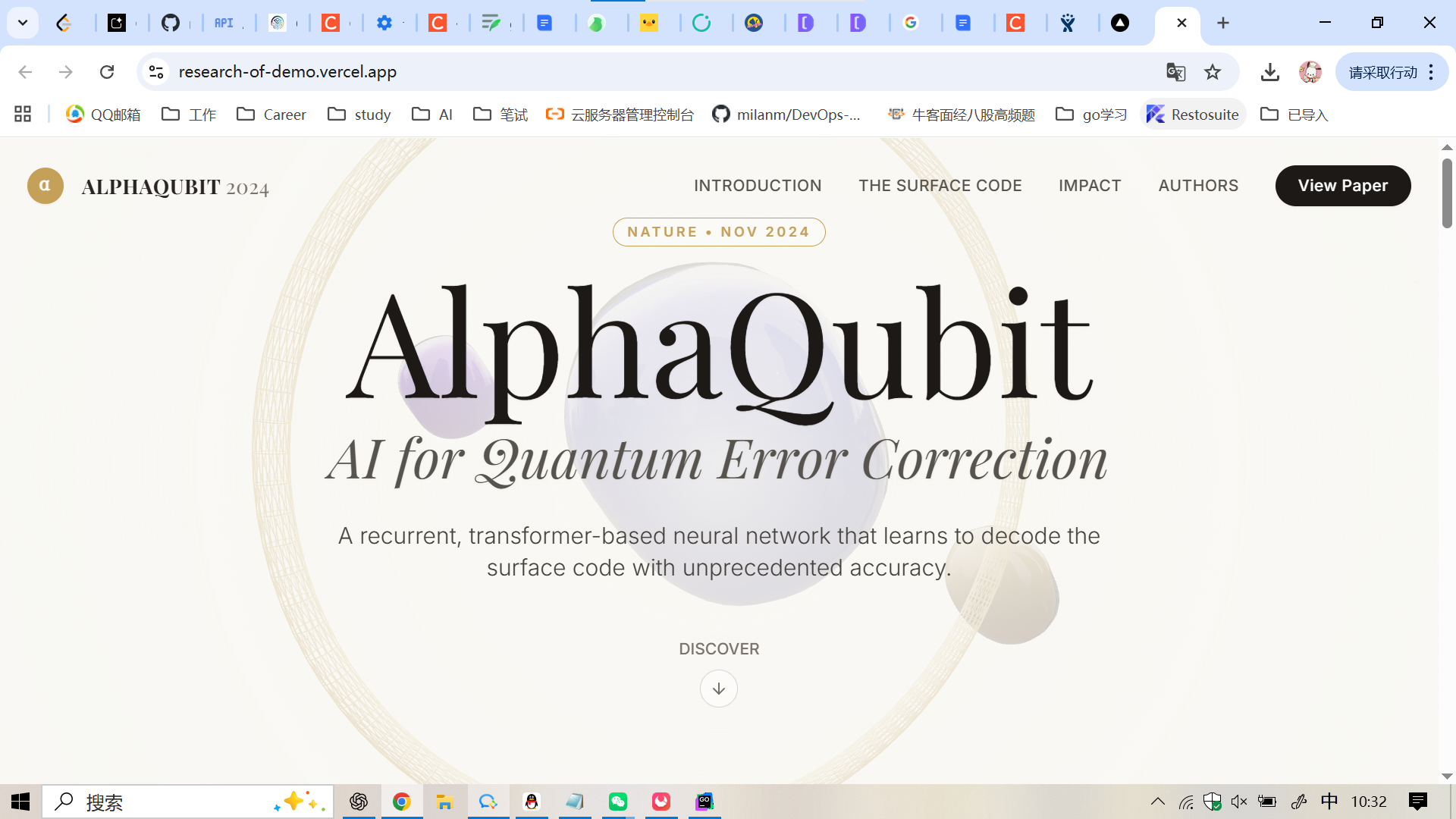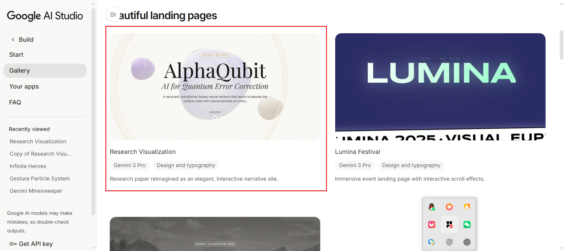 左侧栏找到build中的gallery,gallery中以一个可视化研究的alphaqubit静态网页