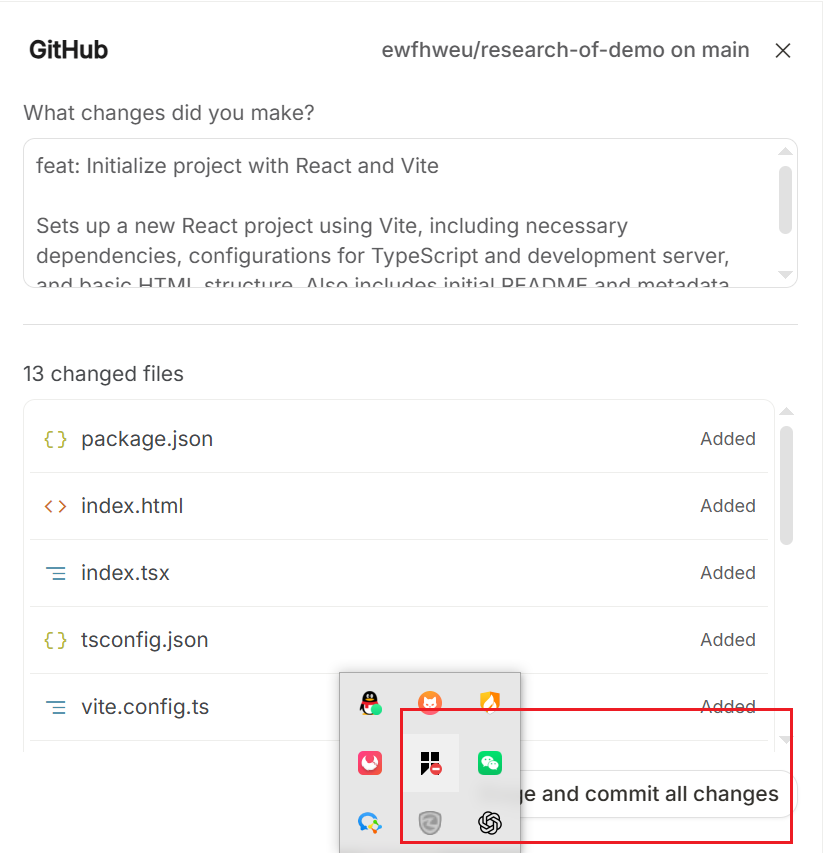 创建完仓库后点击stage and commits