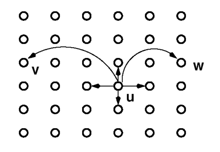 P ( u → v ) ∼ 1 d ( u , v ) r P(u \to v) \sim \frac{1}{d(u,v)^{r}} P(u→v)∼d(u,v)r1