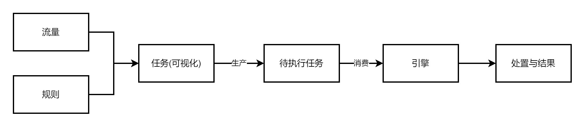 引擎节点应只做消费,消费上游生产的扫描任务(规则+流量),把结果打给下游处置队列。