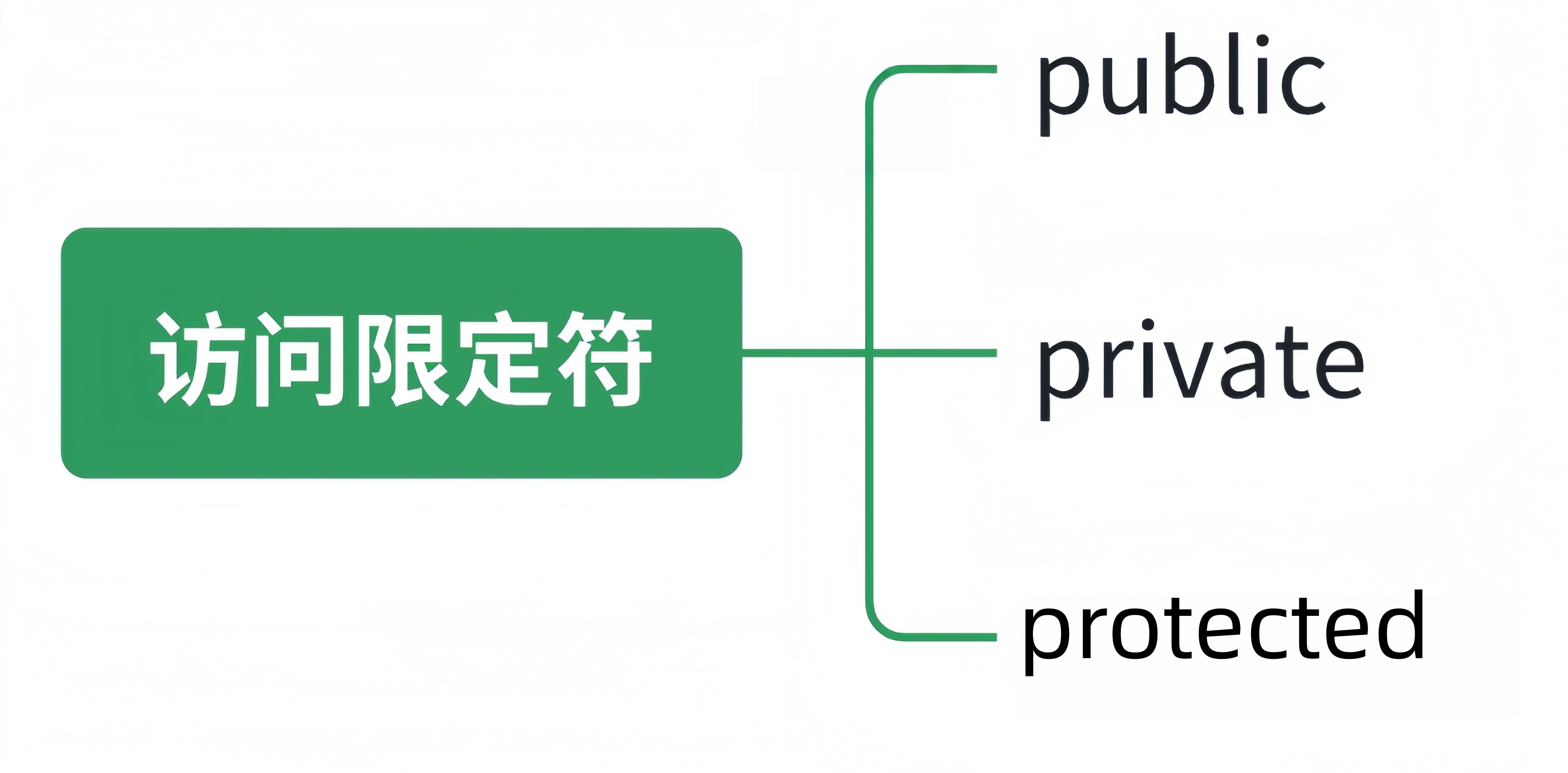 public修饰的成员在类外可以直接被访问;protected和private修饰的成员在类外不能直接被访问,protected和private是⼀样的,以后继承章节才能体现出他们的区别.3️⃣