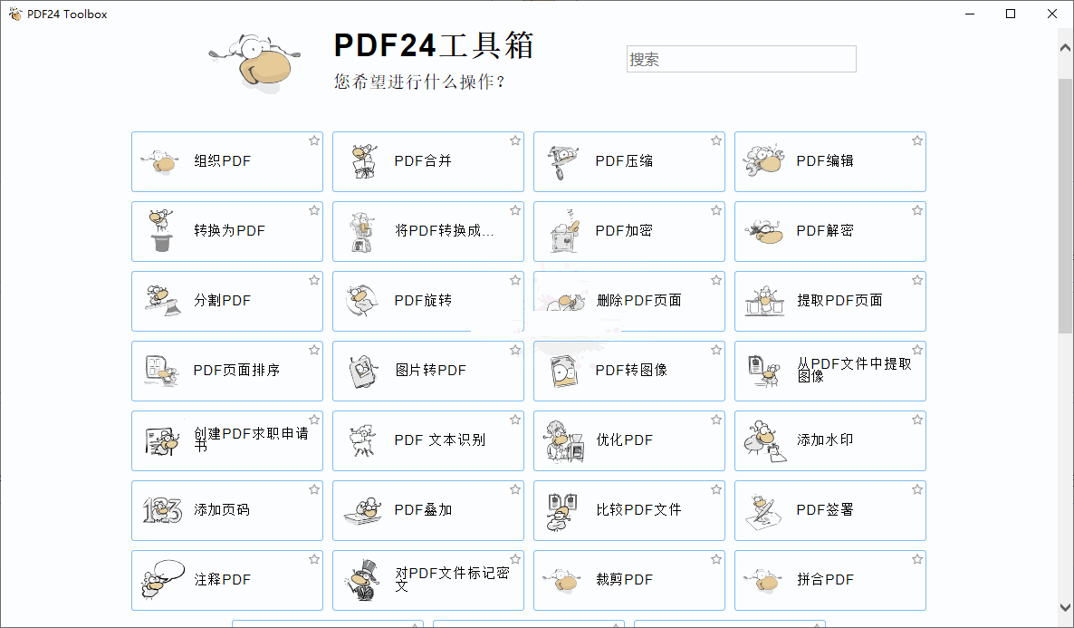 可将大部分文件转成pdf格式的免费软件,安装好后会在你的打印机里看到一个叫PDF24的虚拟打印机,你可将要转成pdf格式的文件打印时选虚拟打印机PDF24,也可以直接将文件以拖拉方式拉进这软件的主视窗编辑区里,它会自动转成pdf格式,它也支持抓取屏幕或图片直接转成pdf格式。