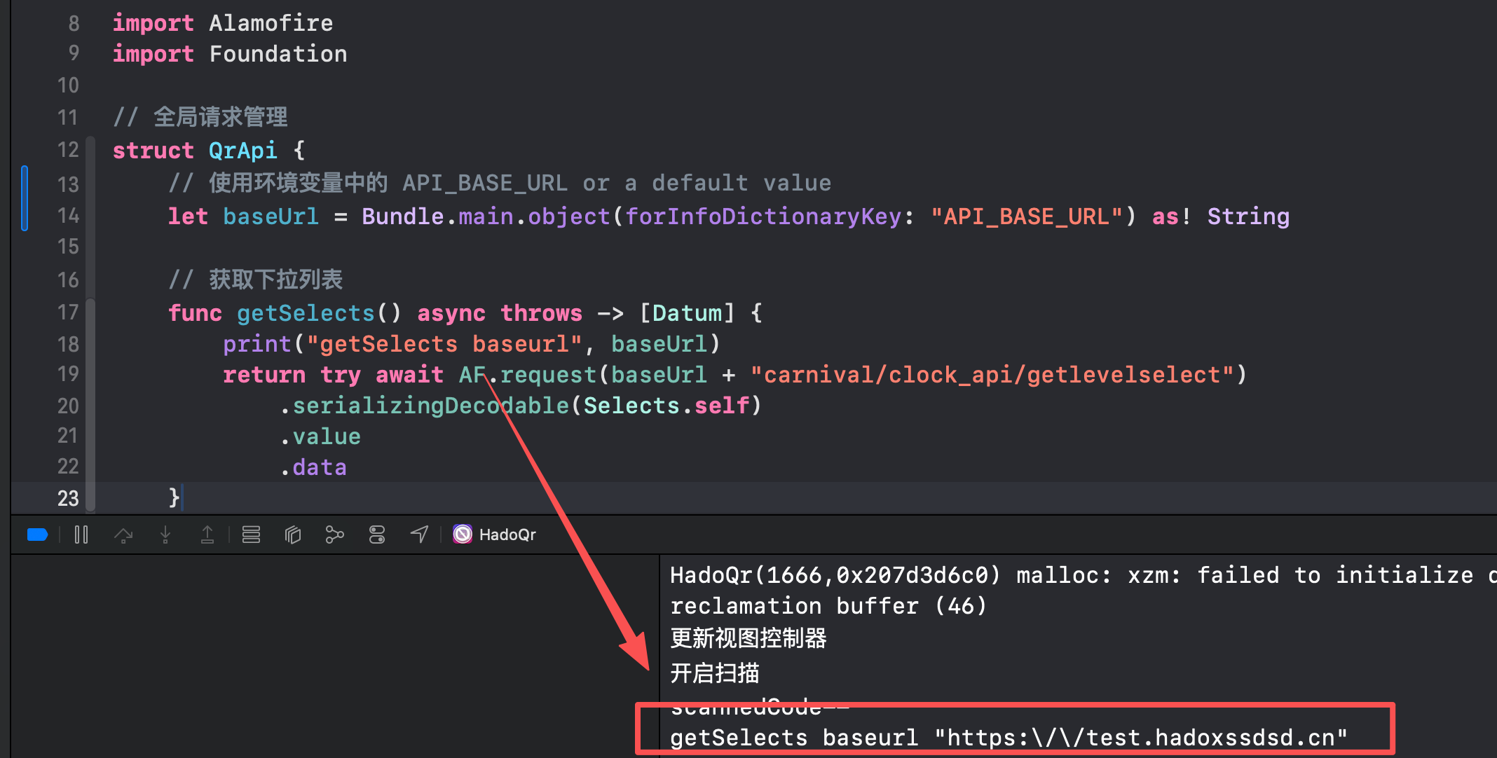 let baseUrl = Bundle.main.object(forInfoDictionaryKey: "API_BASE_URL") as! String