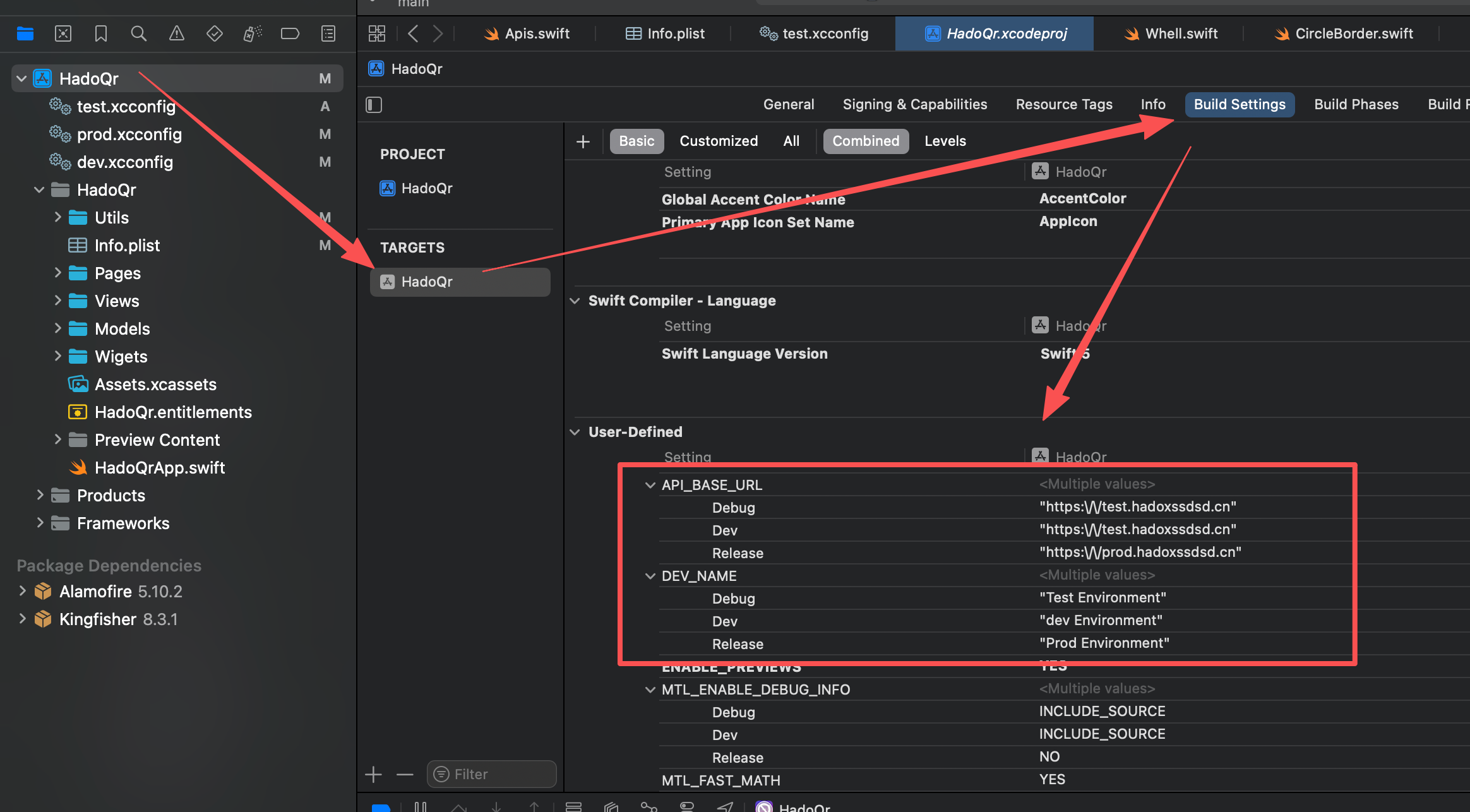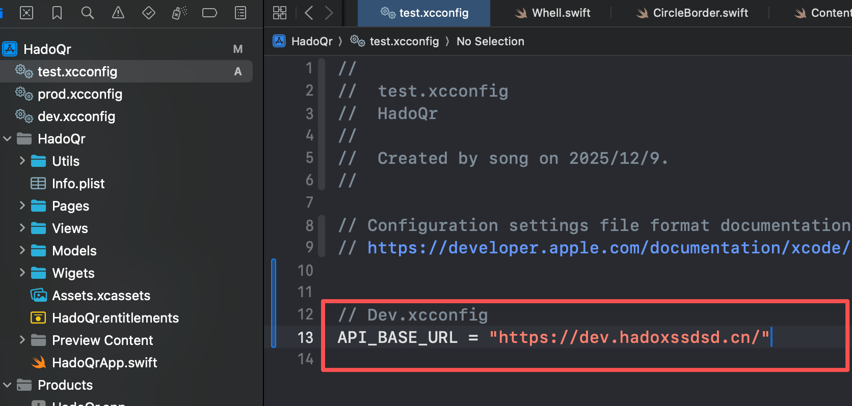 1、现有配置文件 xcconfig 配置环境变量对应的 API_BASE_URL