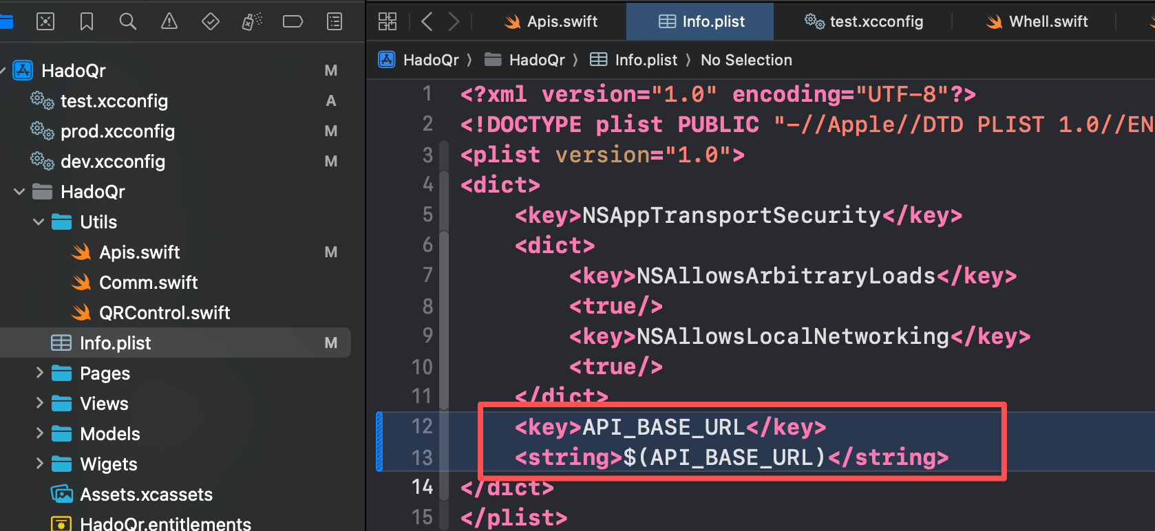 3、将 API_BASE_URL 变量映射到 Info.plist 中