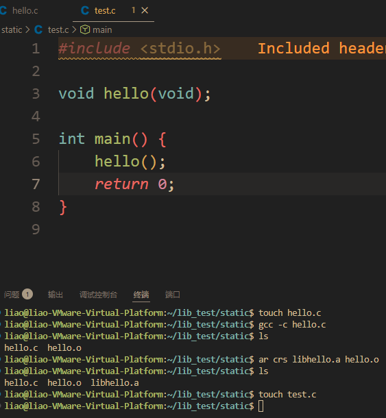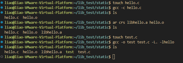 例子 :如果你使用了 libhello.a,在程序编译完成后,libhello.a 中的代码已经包含在可执行文件 test 中,程序运行时不会再依赖 libhello.a。