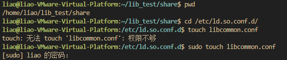 ①在 /etc/ld.so.conf.d/ 目录下创建一个新的配置文件,例如 libcommon.conf,并写入共享库路径: