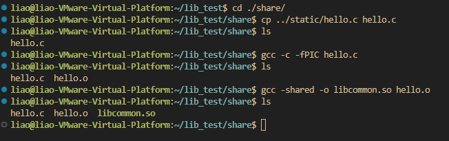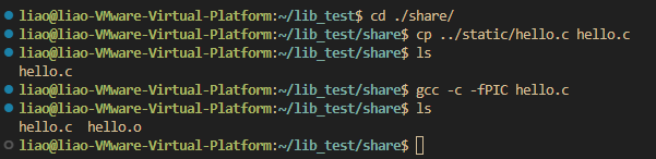 为了生成共享库,我们需要先将 hello.c 编译成目标文件(.o 文件)。使用 -fPIC(Position Independent Code)选项是很重要的,因为共享库需要支持位置无关代码(PIC),即库中的代码能在内存中的任何位置加载。