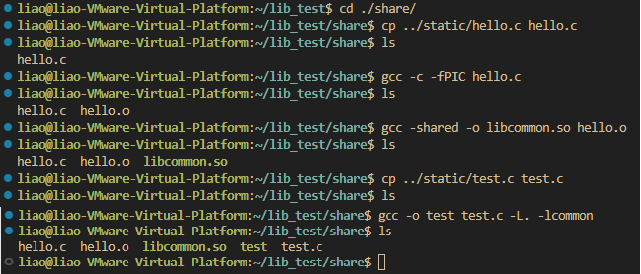 这条命令将 hello.o 目标文件链接成共享库 libcommon.so。
